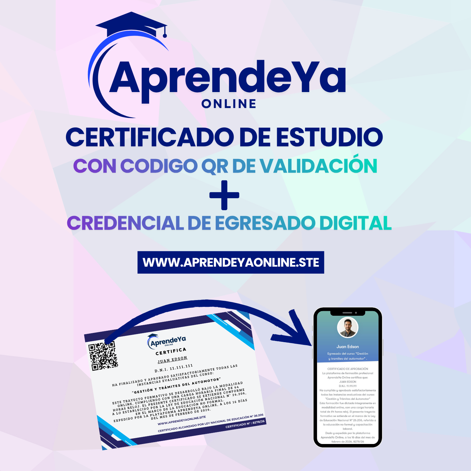 Las formaciones brindadas por AprendeYa Online son de carácter NO OFICIAL. Se encuadran dentro del régimen de Educación No Formal, conforme a lo establecido en la Ley de Educación Nacional N° 26.206. El objetivo primordial es el fortalecimiento de la vida profesional, la actualización de conocimientos y el impulso hacia una mejor inserción laboral del egresado. La certificación emitida acredita saberes en el ámbito privado y profesional.
